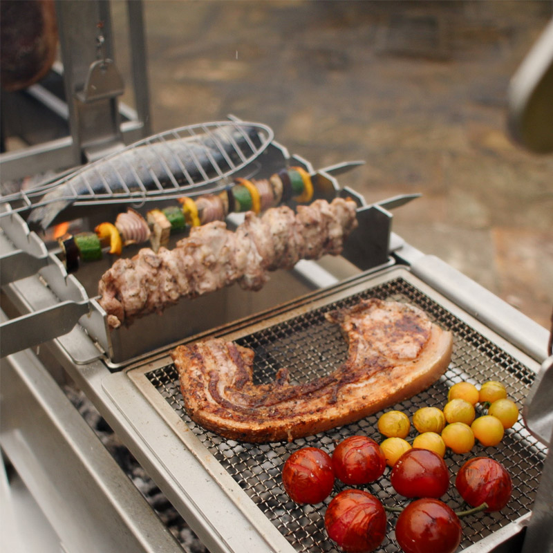 At its core, a modular fire cooking system is exactly what it sounds like. A single, central heat source that can be adapted to suit different cooking styles.