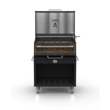 Give your Large Flamery Asado Grill the perfect base with this heavy-duty BBQ trolley. Fitted with sturdy locking castors and side handles, it’s easy to wheel into the ideal cooking position in your outdoor space. The lower shelf doubles as a wood store, keeping logs neatly stacked and ready for the fire, while integrated hooks provide handy storage for your BBQ tools—so everything stays organised and within reach.