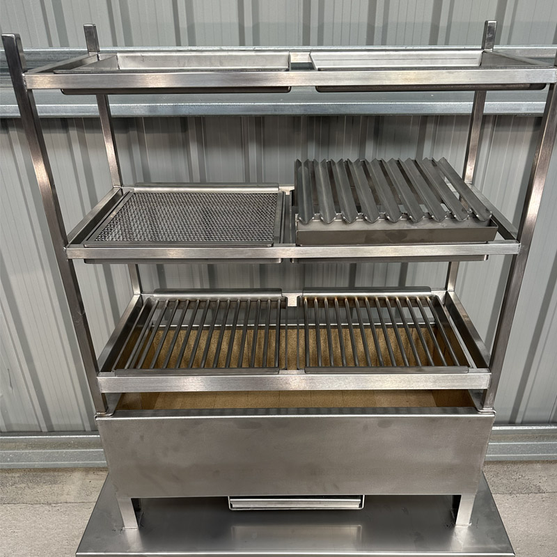 The open bar design also allows fats and juices to drip onto the charcoal below, creating the characteristic aromas and flavours that make live fire cooking so distinctive.