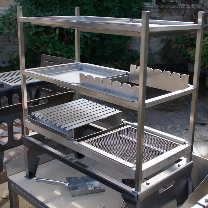 A stainless steel grill frame designed for classic charcoal grilling over the Grill Box firebox.
